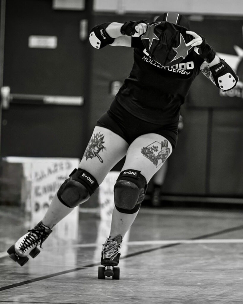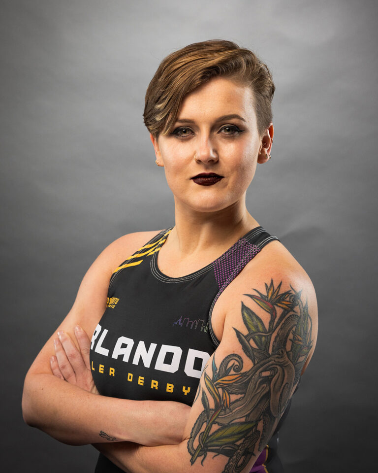 I originally skated as Free the Whipple—a playful nod to my last name. After some personal changes, I realized I needed a new name and spent months searching for the right one. Unrelated to derby, but absolutely related to my love of sea critters – I found myself ugly-crying at the rays in aquarium beneath the Manta rollercoaster at SeaWorld. Something about it clicked, and the name never let go.